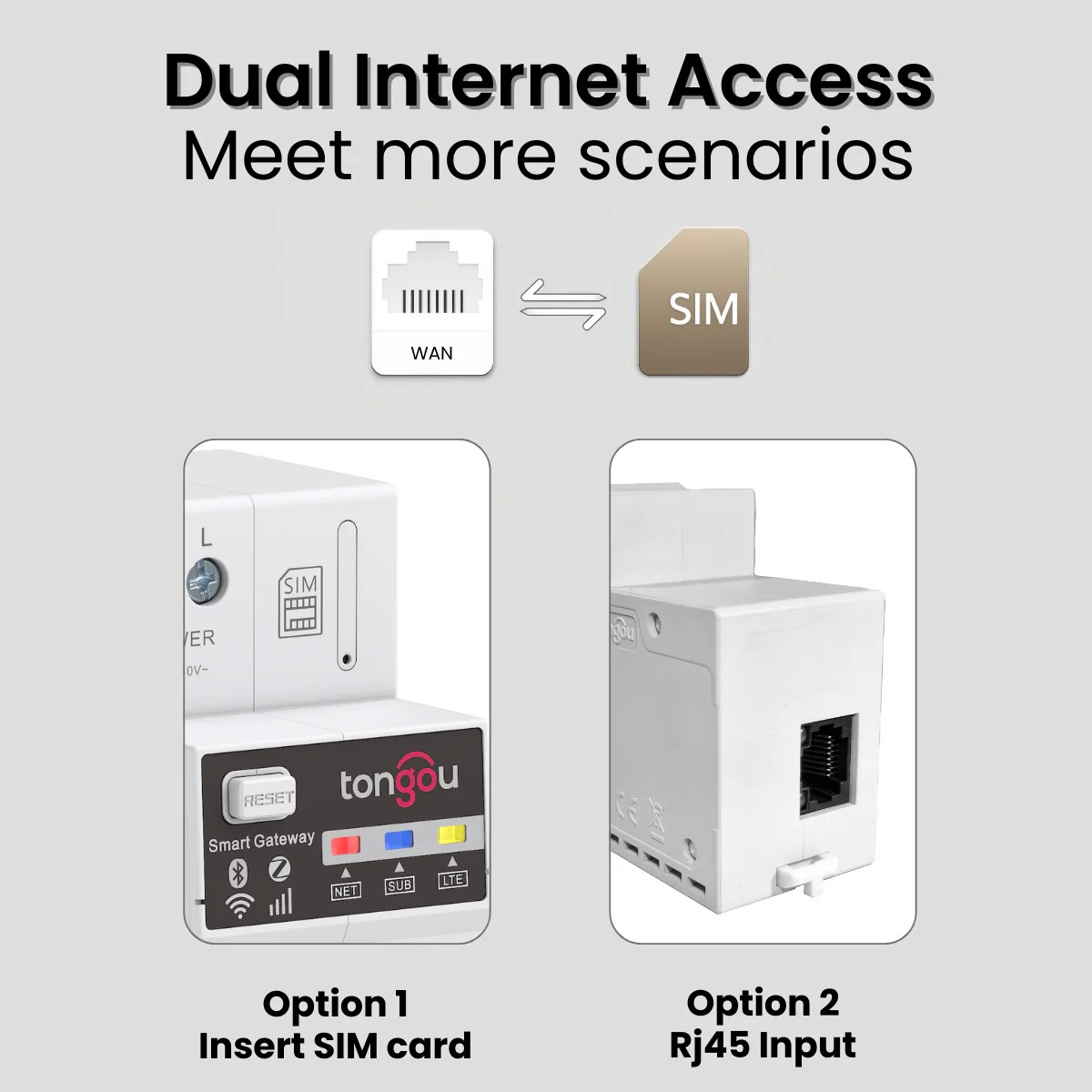 This smart gateway offers two distinct modes for internet access. Connect it to your existing home network via Rj45 for stable, high-speed performance. Or, in any location without fixed broadband, simply insert a SIM card to instantly convert the 4G LTE signal into powerful Zigbee, and Bluetooth connectivity.