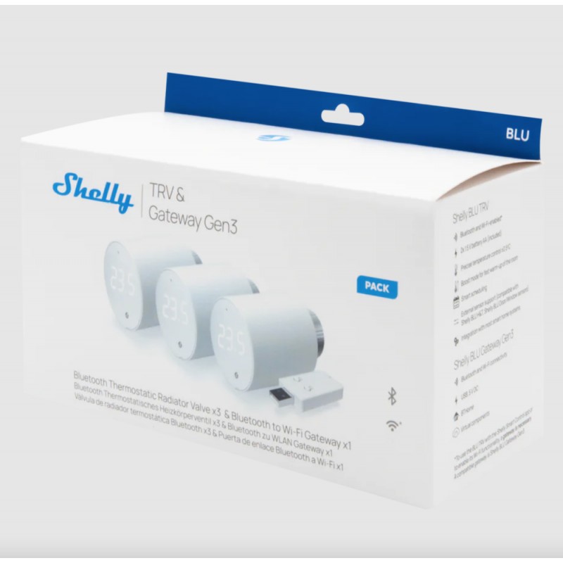 Le pack de 3 têtes thermostatiques intelligentes Shelly BLU TRV vous offre un contrôle précis et connecté de vos radiateurs grâce à la technologie Bluetooth. Chaque tête ajuste la température d’une pièce en modulant le débit d’eau chaude du radiateur. La température peut être modifiée à tout moment en tournant la molette rotative ou via votre smartphone, tablette ou ordinateur. Le dispositif maintient également la température souhaitée selon un programme hebdomadaire défini. Chaque tête est alimentée par 2 piles AA 1,5 V (incluses).
