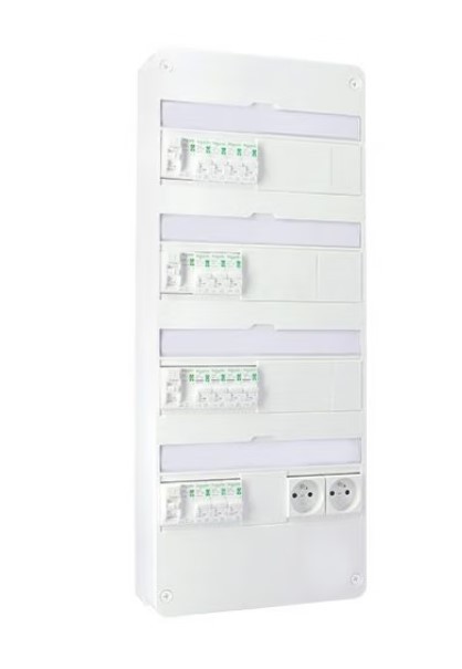À savoir : Conformément à la norme NF C 15-100, le tableau électrique principal d'un logement doit comporter au minimum 2 rangées. Cela garantit assez de place pour les interrupteurs différentiels, les disjoncteurs divisionnaires et une réserve obligatoire de minimum 20% pour de futurs circuits.