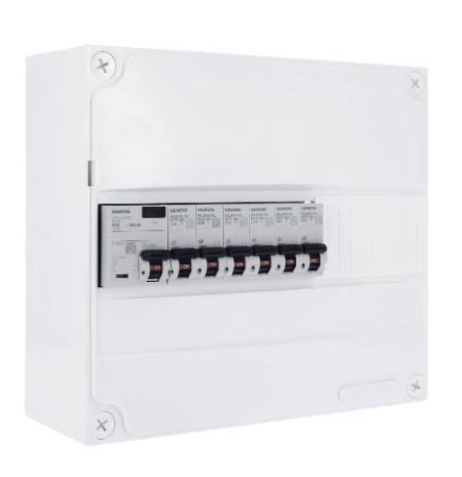 Ce coffret électrique 1 rangée de la marque Siemens est prééquipé de dispositifs de protection Siemens notamment 6 disjoncteurs et 1 interrupteur différentiel.