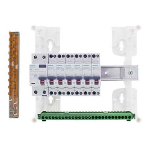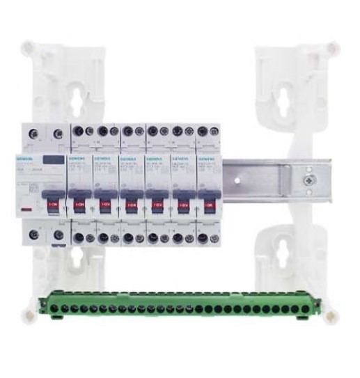 - Le peigne horizontal 13 modules phase + neutre n'est pas coupé, vous pouvez ajouter des disjoncteurs Siemens à vis.