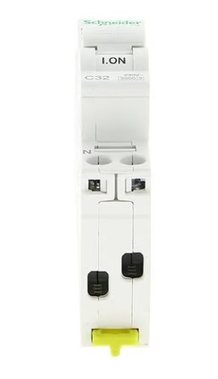 - Ce disjoncteur 32A peut s'installer dans un tableau électrique Schneider en se clipsant sur le rail DIN et se raccorde via ses bornes à vis.