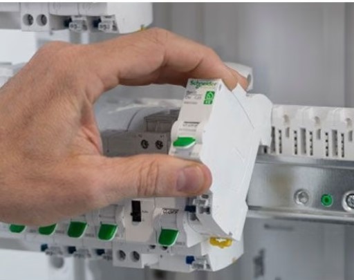 Pour intégrer un tableau électrique Schneider, ce dispositif de protection doit être embroché sur le répartiteur d'alimentation.