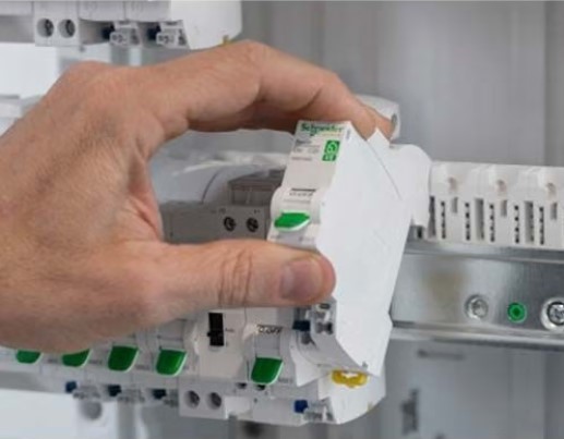 • Ce disjoncteur à bornes auto s'installe en un seul clic dans un tableau électrique Schneider.