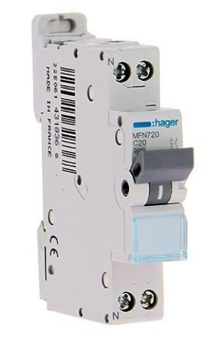 HAGER Disjoncteur 20A Ph+N courbe C 3kA 230V - MFN720