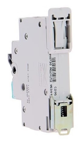 - disjoncteur qui s'installe et s'enlève facilement du rail du tableau électrique grâce à son loquet de démontabilité