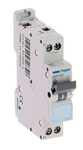 Caractéristiques du disjoncteur électrique Phase + Neutre Hager :