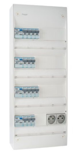 HAGER Gamma Tableau électrique pré-équipé 4 rangées 2ID 40A 2ID 63A 14 disjoncteurs