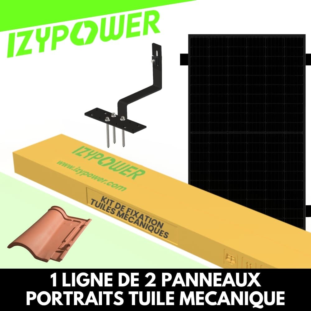 Le kit IZYFIX 2 Panneaux est spécialement conçu pour fixer deux panneaux solaires de 30 mm d'épaisseur sur une toiture en tuiles mécaniques. Il comprend une seule boîte Début, parfaitement adaptée à une installation compacte, rapide et conforme aux bonnes pratiques d’intégration. Ce format minimaliste est idéal pour les petites installations Plug & Play ou les débuts de ligne. Rails anodisés noirs pour un rendu sobre et homogène.