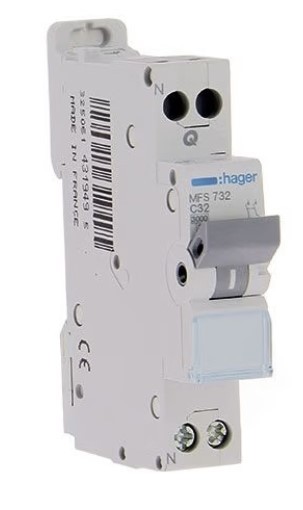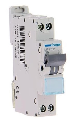 HAGER Disjoncteur 32A auto Ph+N courbe C 3kA 230V - MFS732Disjoncteur