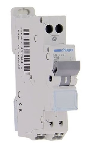 HAGER Disjoncteur 10A auto Ph+N courbe C 3kA 230V - MFS710Disjoncteur