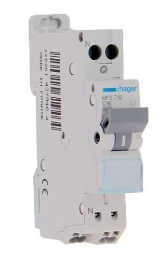 HAGER Disjoncteur 16A auto Ph+N courbe C 3kA 230V - MFS716Disjoncteur