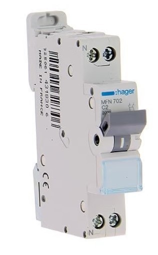 HAGER Disjoncteur 2A auto Ph+N courbe C 3kA 230V - MFS702Disjoncteur